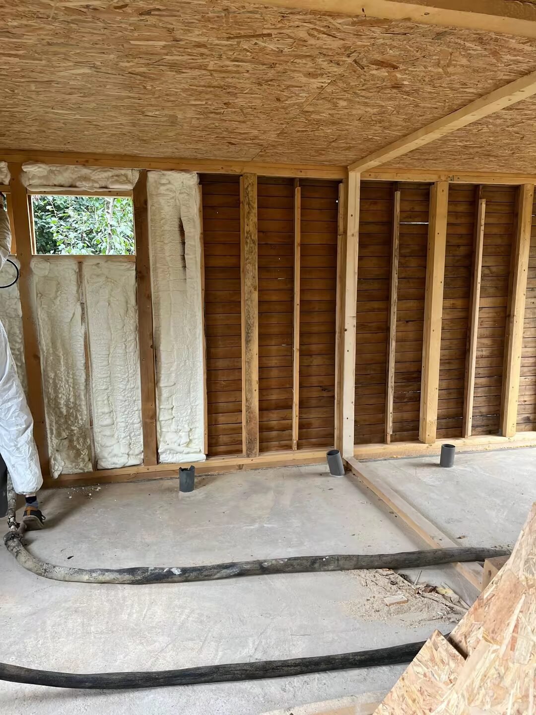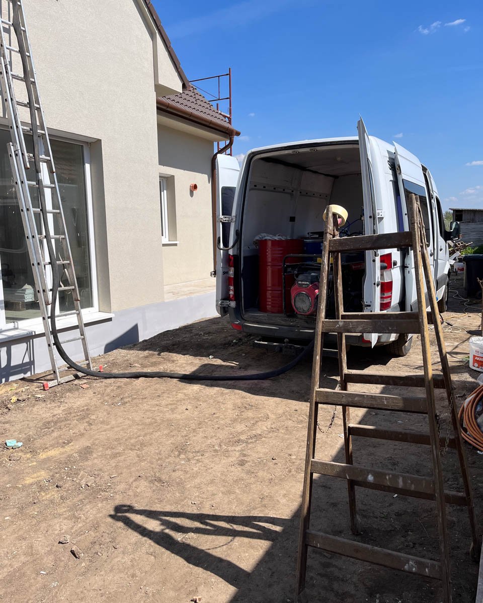 Ebben a projektben egy fa szerkezetű házikót szigeteltünk 10 cm vastag szórt purhabbal. Az alkalmazott technológiának köszönhetően a hab teljesen hézagmentes réteget alkot, így megakadályozza a hőszivárgást és jelentősen javítja az épület energiahatékonyságát.