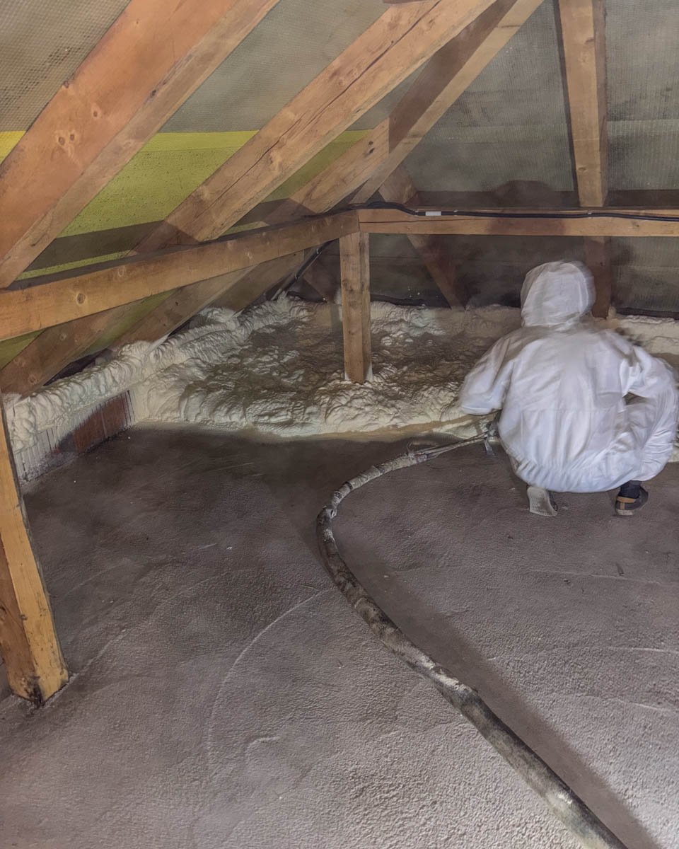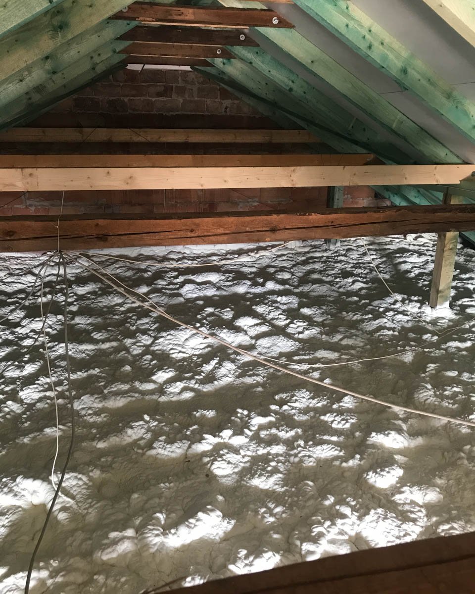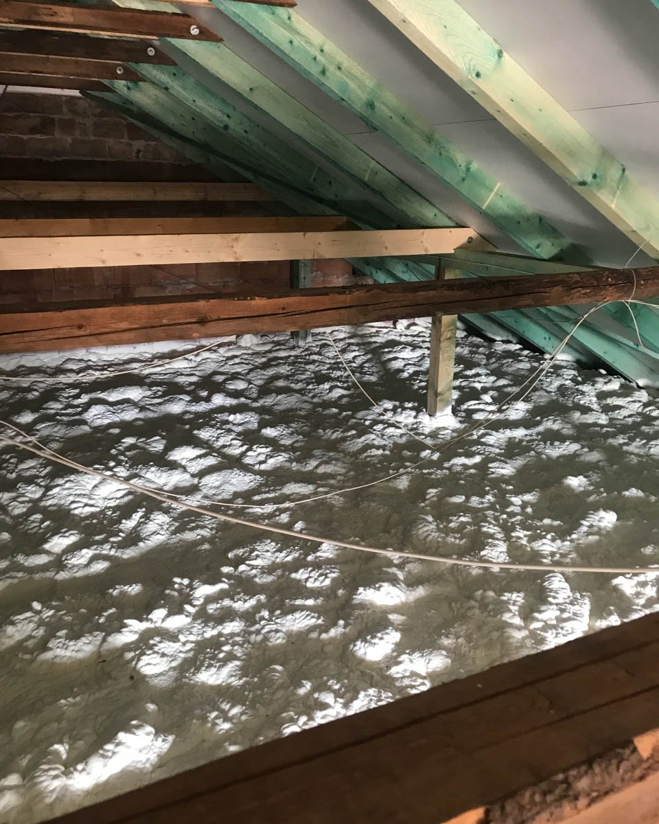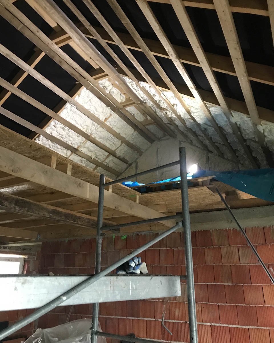 Családi ház felső szintjének szigetelése – 17 cm nyitott cellás purhabbal, 250 m² felületen