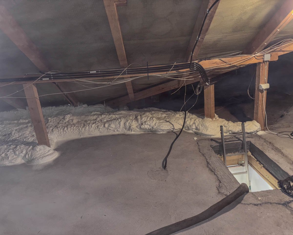 Ezen a munkánkon egy családi ház tetőterét szigeteltük 20 cm vastag nyitott cellás purhabbal. Az alkalmazott vastagságnak köszönhetően a tetőtér kiváló hő- és hangszigetelést kapott, jelentősen csökkent a hőveszteség, és az otthon energiahatékonyabb, komfortosabb lett. A kivitelezést gyorsan és tisztán elvégeztük, így a megrendelő szinte azonnal élvezhette az új szigetelés előnyeit.