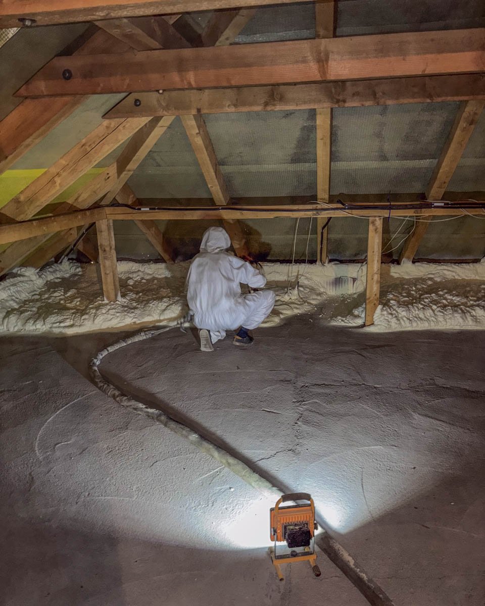 Családi ház tetőterének szigetelése 20 cm vastag purhabbal