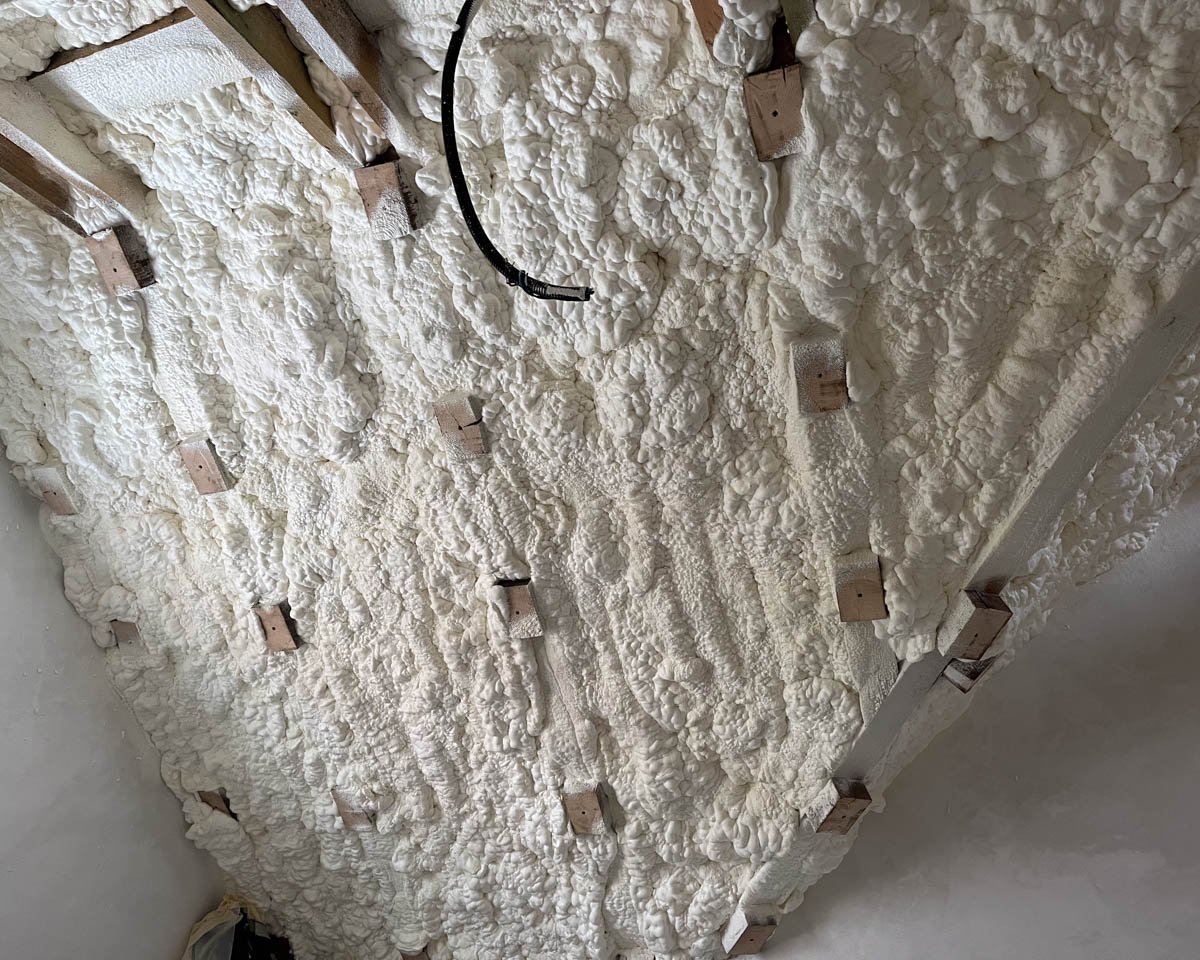 Gipszkarton álmennyezet szigetelése nyitott cellás purhabbal