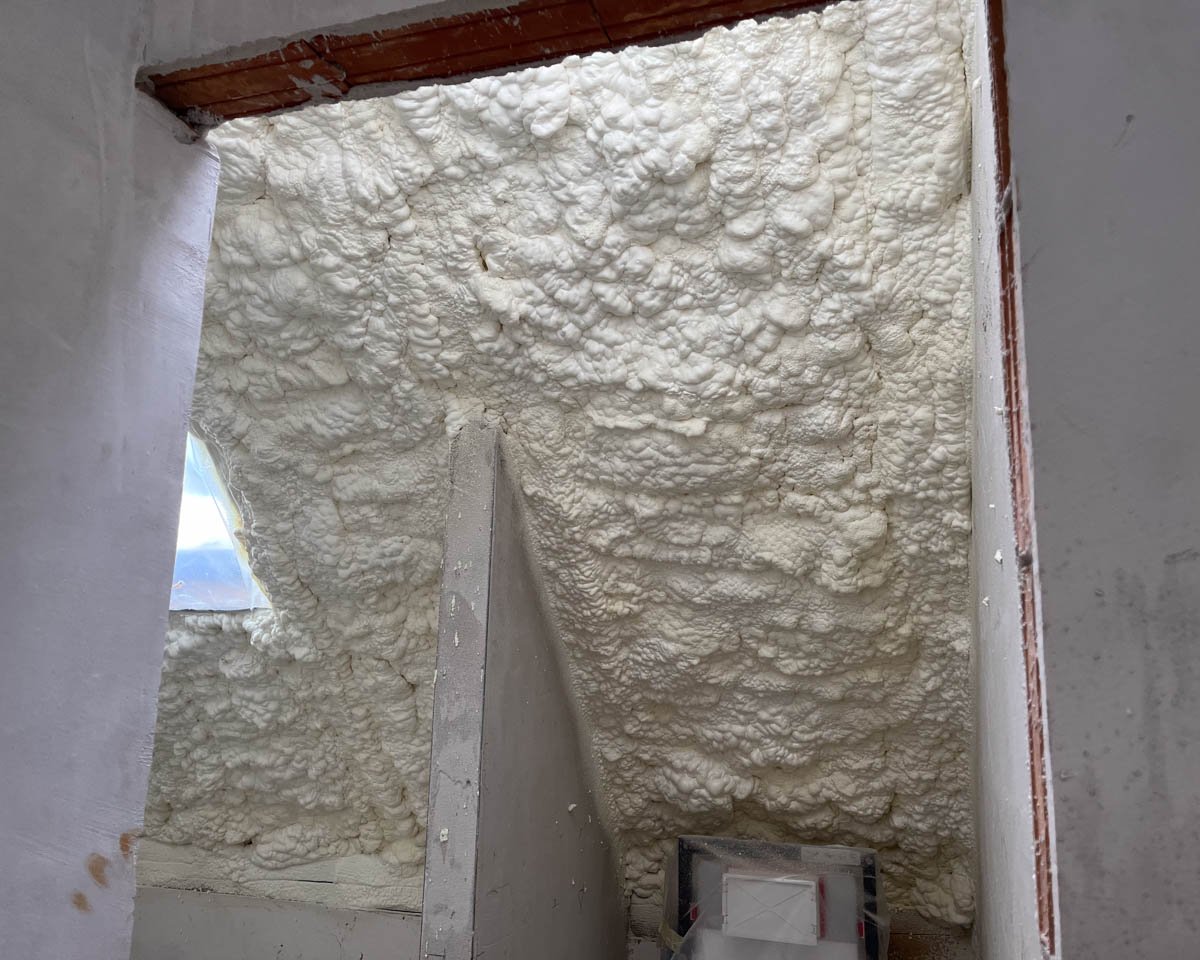Ebben a projektben egy gipszkarton álmennyezet fölé fújtunk 25 cm vastag nyitott cellás purhab szigetelést. A jelentős rétegvastagság kiemelkedő hő- és hangszigetelő tulajdonságokat biztosít, így a helyiségek télen melegebbek, nyáron hűvösebbek maradnak. A szórt purhab tökéletesen illeszkedik minden felülethez, megszüntetve a hőhidakat és minimalizálva az energia-veszteséget. Ez a megoldás ideális választás álmennyezetek esetén is, ahol fontos a gyors, tiszta és hatékony kivitelezés.